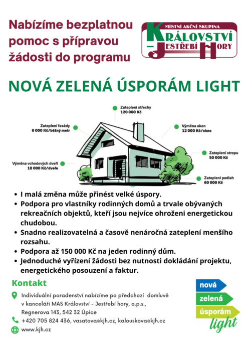 Jaké jsou možnosti k získání dotace Vám mohou poradit i pracovníci Místní akční skupiny Království - Jestřebí hory, které je naše obec členem. Pokud byste rádi využili individuální poradenství k této záležitosti, kontaktujte přímo MAS KJH, případně mě a konzultaci Vám zprostředkuji.