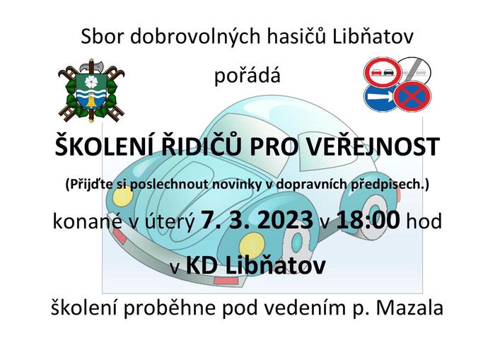 libňatovští hasiči si pro váš opět připravili školení řidičů. Využijte tuto možnost a přijďte si zopakovat novinky v dopravních předpisech.