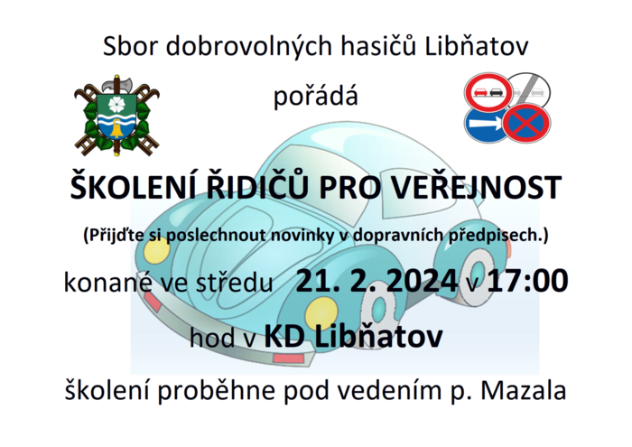Sbor dobrovolných hasičů Libňatov pořádá ŠKOLENÍ ŘIDIČŮ PRO VEŘEJNOST