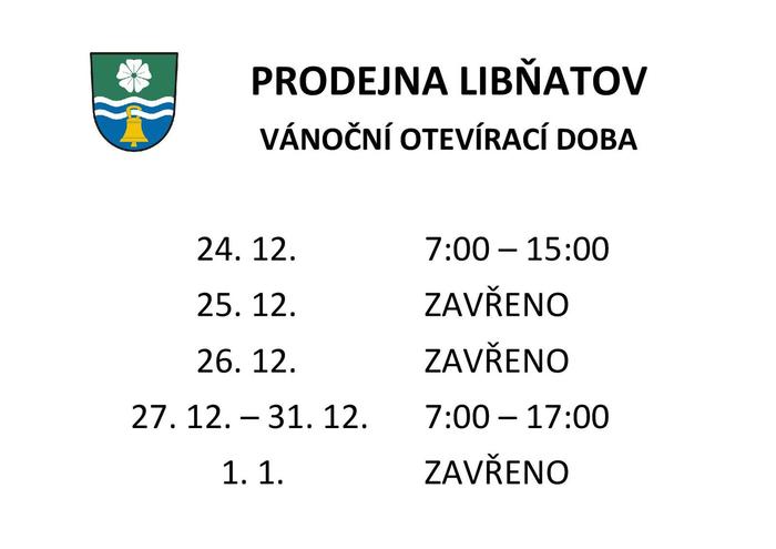 Úvod > Obec > Aktuálně z obce > Vánoční otevírací doba prodejny v Libňatově