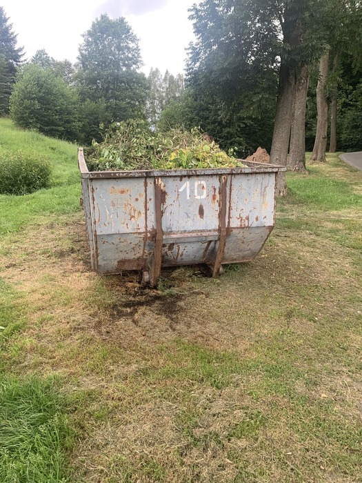 velkoobjemový kontejner u mateřské školy slouží už zhruba dvacet let k ukládání POUZE POSEČENÉ TRÁVY. Nepatří sem dřevo, kůra ani jiný materiál.