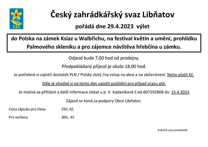 libňatovští zahrádkáři zvou na perfektní jarní výlet do Polska. Využijte toho a jeďte se podívat na zahrádkářskou inspiraci, ale i na prohlídku zámku nebo hřebčína!