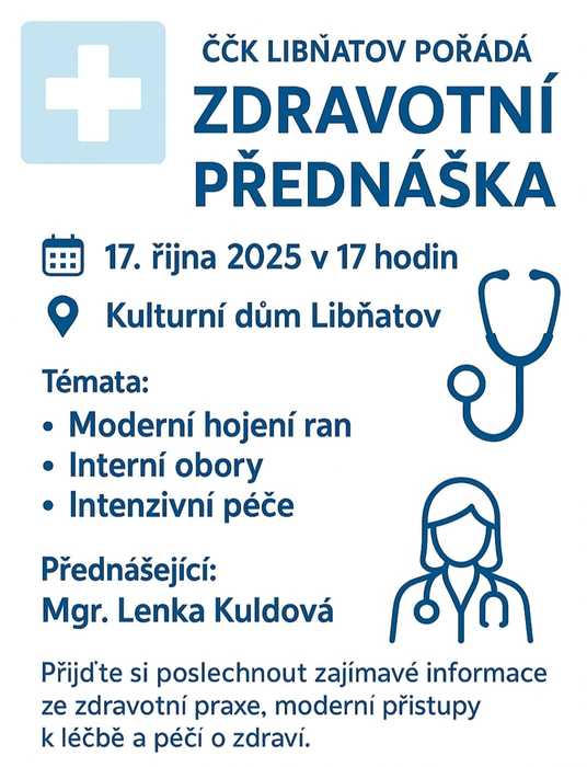 ČČK Libňatov dnes pořádá zdravotnickou přenášku v kulturním domě!