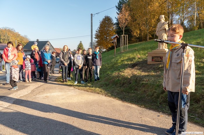 Slavnostní odhalení sochy obec provedla s drobným kulturním programem, které zajistila místní mateřská škola a místní děti a mládež. Vystoupili Dominik Mádr, Hugo Novák a Jiří Klement, dále pak Natálie Tomková, Marek Kadaník a bratři Jan Balcar a Petr Balcar. Posledně jmenovaný na závěr zazpívat také původní československou státní hymnu.