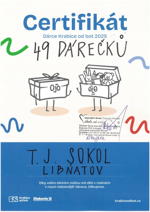 Adventní čas je pro nás každoročně příležitostí udělat něco dobrého pro ty, na které se štěstí tolik neusmálo. Proto jsme se i letos zapojili do charitativního projektu Krabice od bot, jehož 15. ročník probíhal po celé České republice od 24. 11. do 8. 12. 2025.